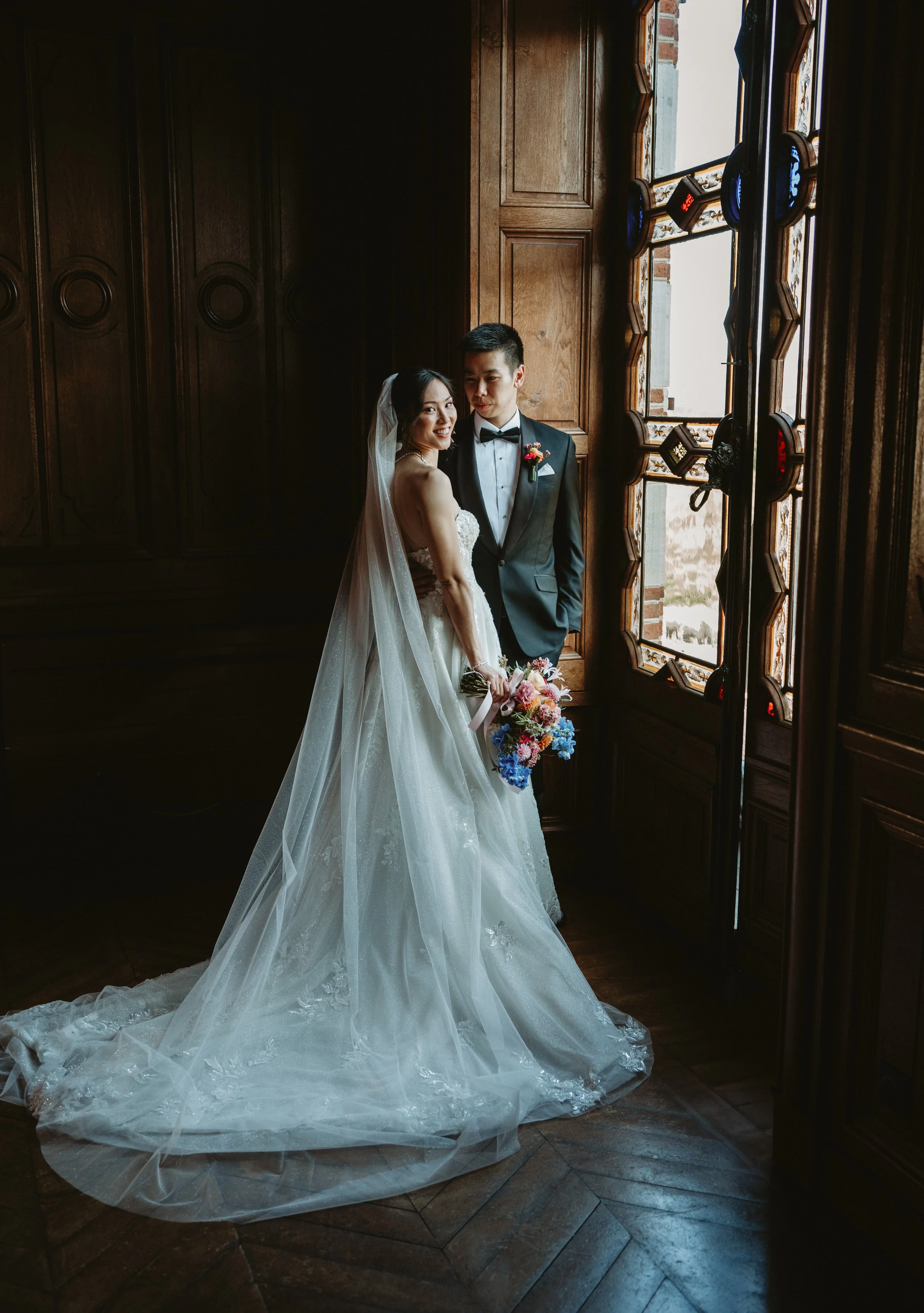 He shared some great processed photos with us already on the day at the event, while we were still at the wedding reception, so we could already get excited about the end results to come. He was quick at delivering the end results as well, and was kind enough to comply with our extra requests that came after :)